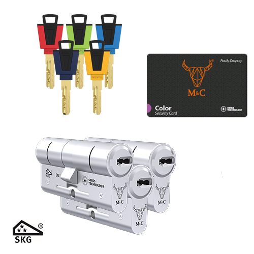 De M&C Color+ cilindersloten zijn voorzien van SKG 3 keurmerk, een gehard stalen brug die de cilinder beschermt tegen het breken van de cilinder en een extra. Het slot heeft ook een boorbeveiliging en een anti-slagpickfunctie, waardoor het zeer moeilijk is voor inbrekers om het slot te manipuleren.