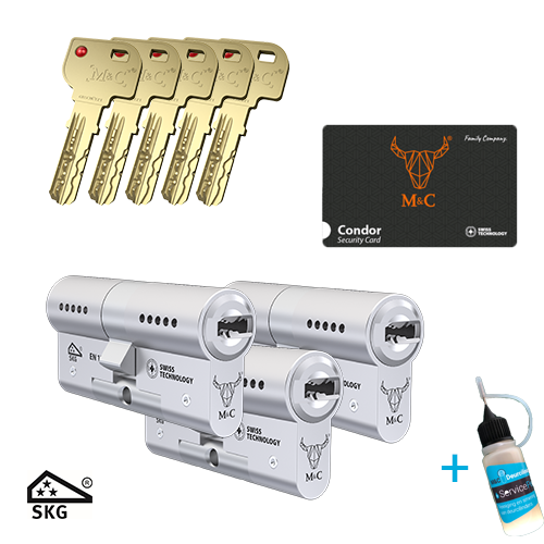 De M&C Condor cilindersloten zijn voorzien van een gehard stalen brug die de cilinder beschermt tegen boren en het breken van de cilinder. Het slot heeft ook boorbeveiliging en een anti-slagpickfunctie, waardoor het zeer moeilijk is voor inbrekers om het slot te manipuleren.