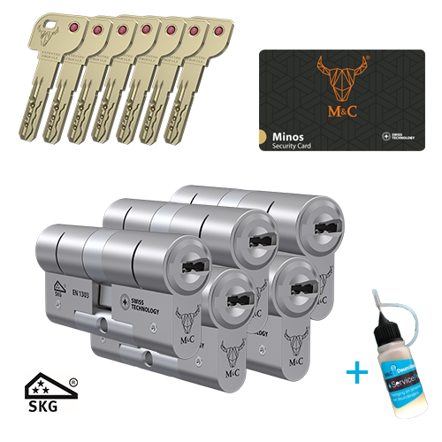 M&C Minos cilindersloten zijn hoogwaardige sloten die worden geproduceerd door M&C, een Nederlandse fabrikant van sloten en beveiligingssystemen. Deze cilindersloten zijn ontworpen om maximale beveiliging te bieden tegen inbraak en manipulatie. De M&C Minos cilindersloten zijn voorzien van SKG 3 keurmerk, een gehard stalen brug die de cilinder beschermt tegen het breken van de cilinder en een extra boorbeveiligingselement bovenop de standaard boorbeveiliging. Het slot heeft ook een anti-slagpickfunctie, waardoor het zeer moeilijk is voor inbrekers om het slot te manipuleren.