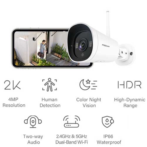 Foscam G4C, 2K Starlight WiFi buiten beveiligingscamera