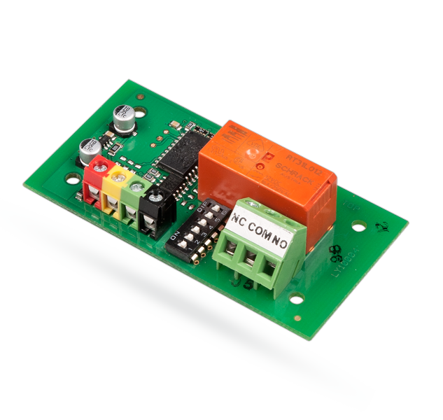 - Het relais communiceert via de bus en wordt gevoed door de bus van de centrale